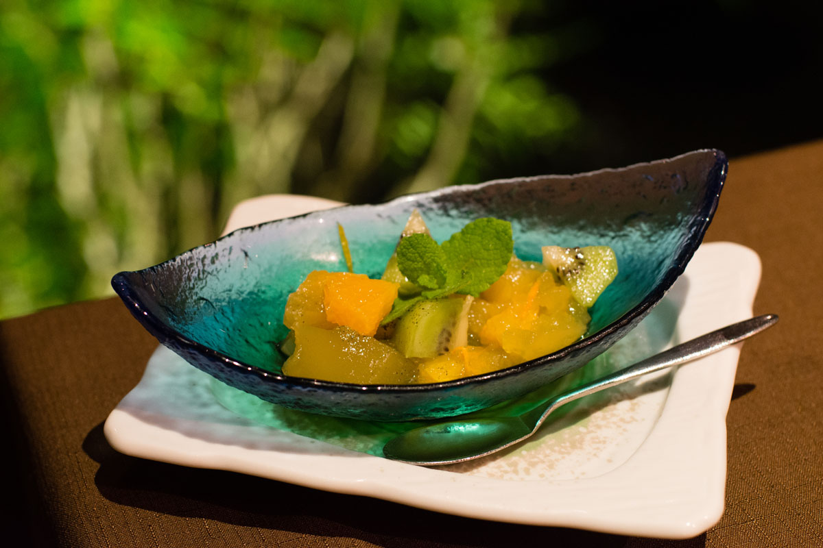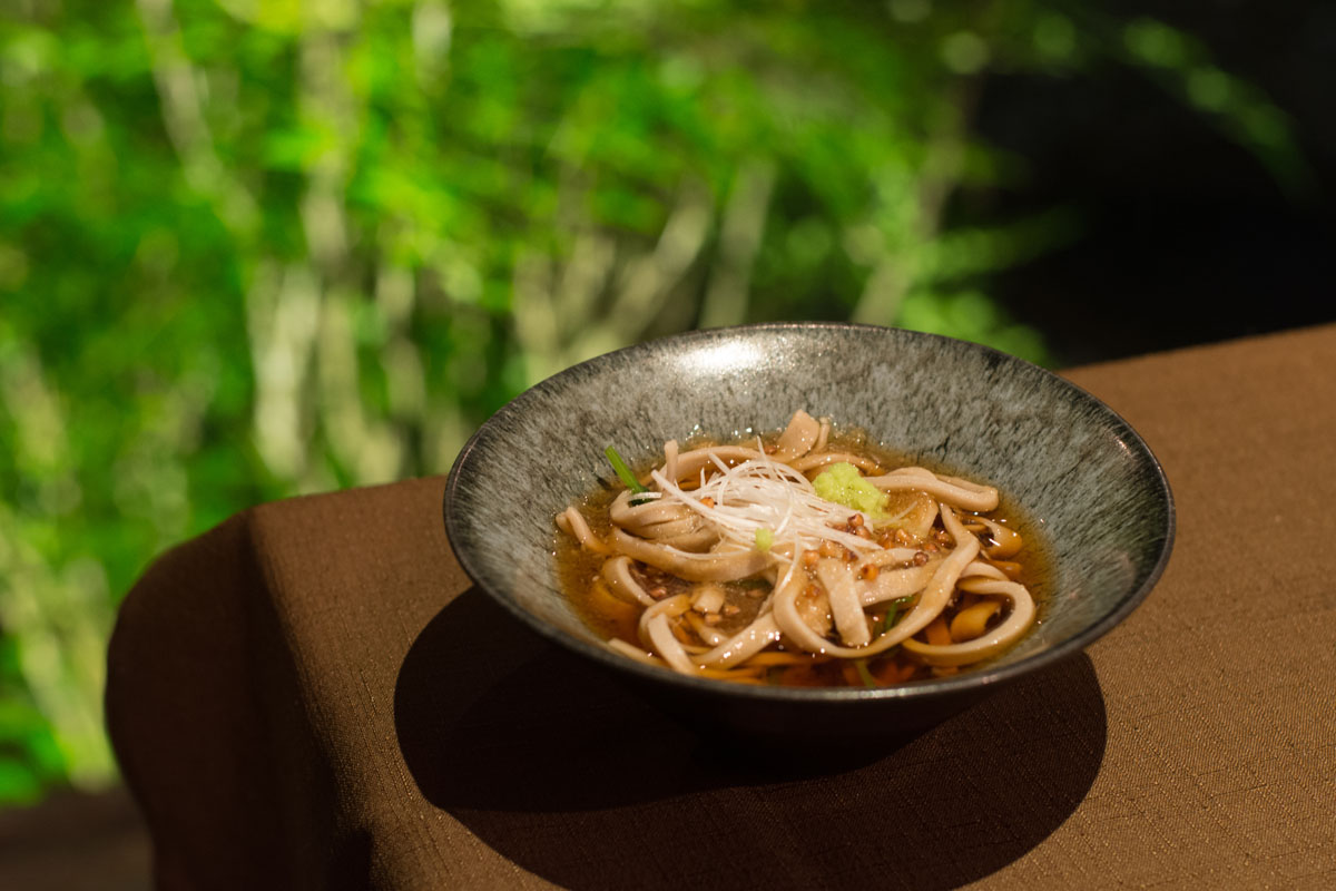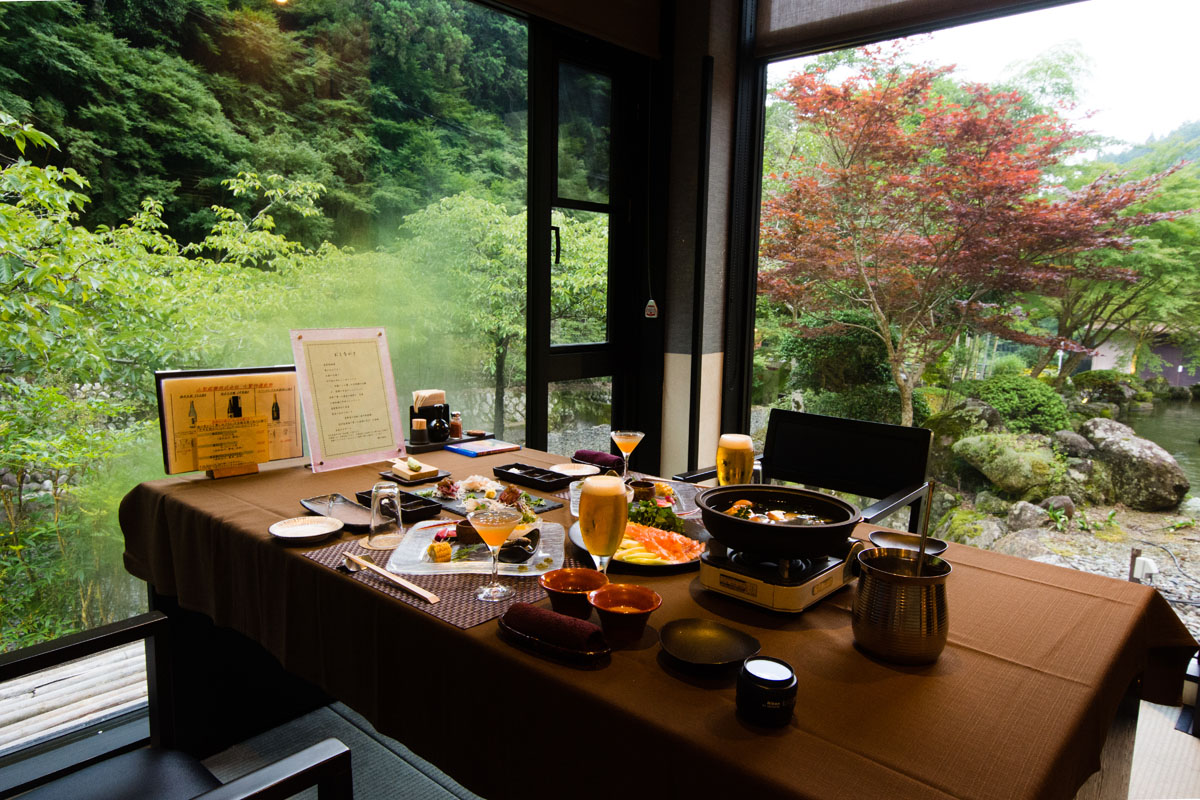 以前までメインディッシュはピリ辛の猪鍋だったが、今回は「猪鍋」か「茜鱒のしゃぶしゃぶ」のどちらかを予約の時に選べるようになっていた。