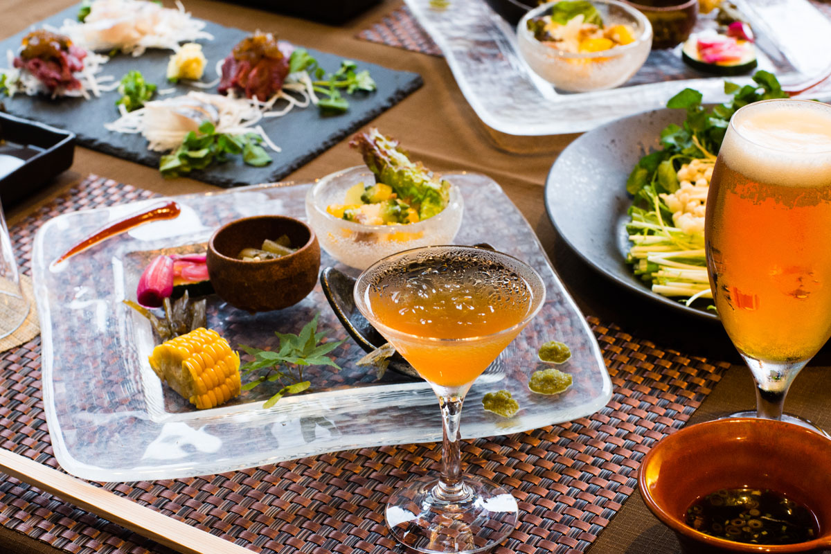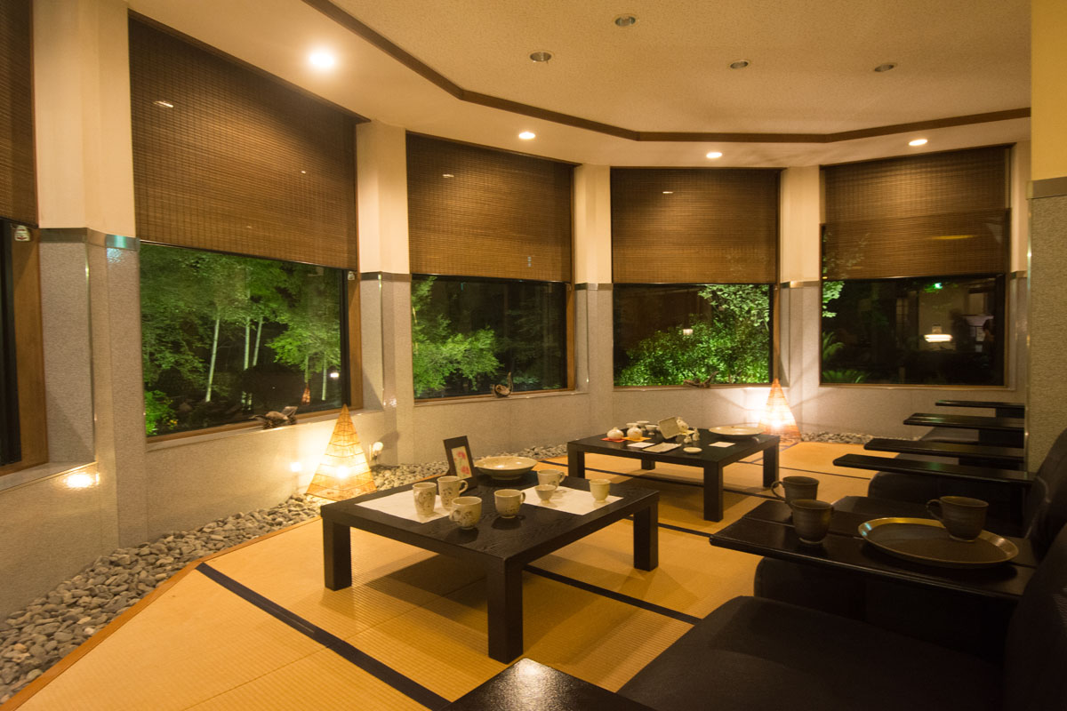 18:00になり、1階の個室の食事処へ降りていくとスタッフの方々が笑顔で迎えてくれました。