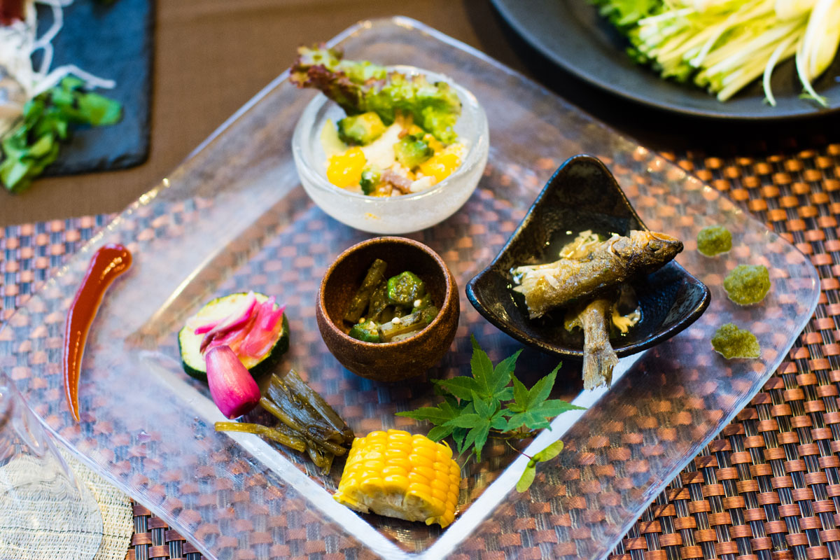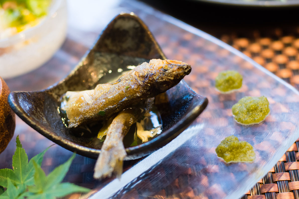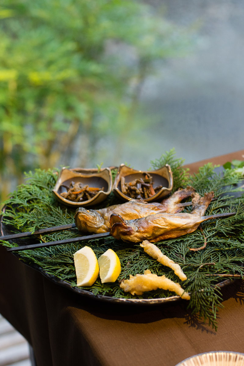 稚鮎の素揚げ。この土地で食べられてきた田舎の料理ですが丁寧につくり、美しく盛るとおいしさが何倍にも感じられる。