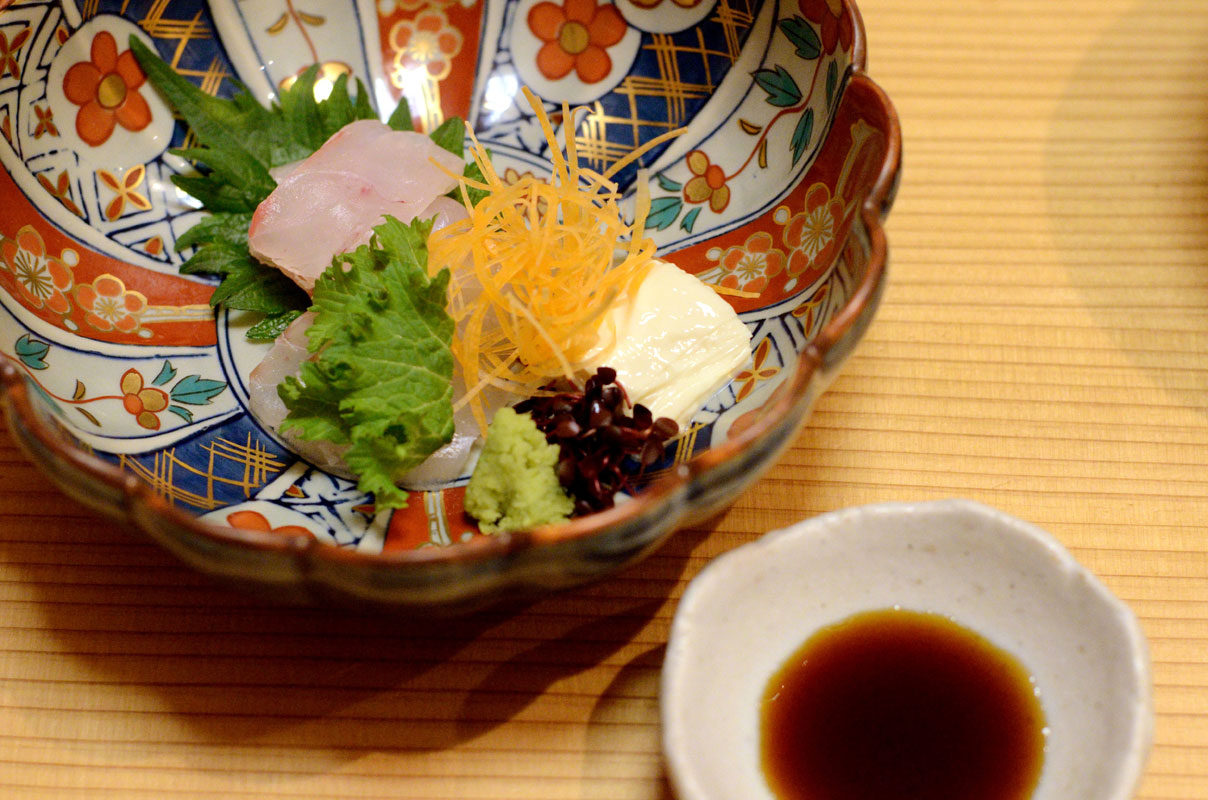 ヒラスズキと那須の生湯葉(あともう一品何だったか忘れたっ)