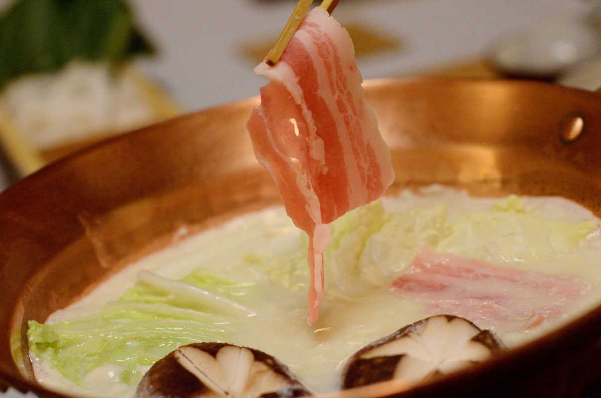 さてここれが那須黒毛和牛と三元豚の豆乳しゃぶしゃぶ