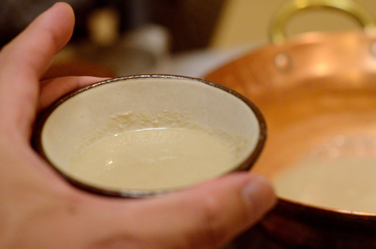 鍋に残った豆乳の出汁もスタッフの方が「おいしいですよ」と教えてくれる。