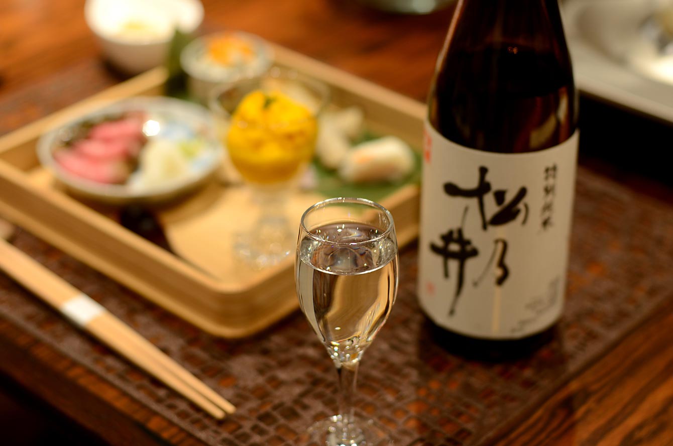 この日の食前酒は「特別純米酒 松乃井」。お隣町の十日町の造り酒屋さんのものらしい。下戸な自分も美味しく飲めた!帰ってサイト見たら、なにやら品評会の優秀賞受賞を受賞してるシロモノらしい。