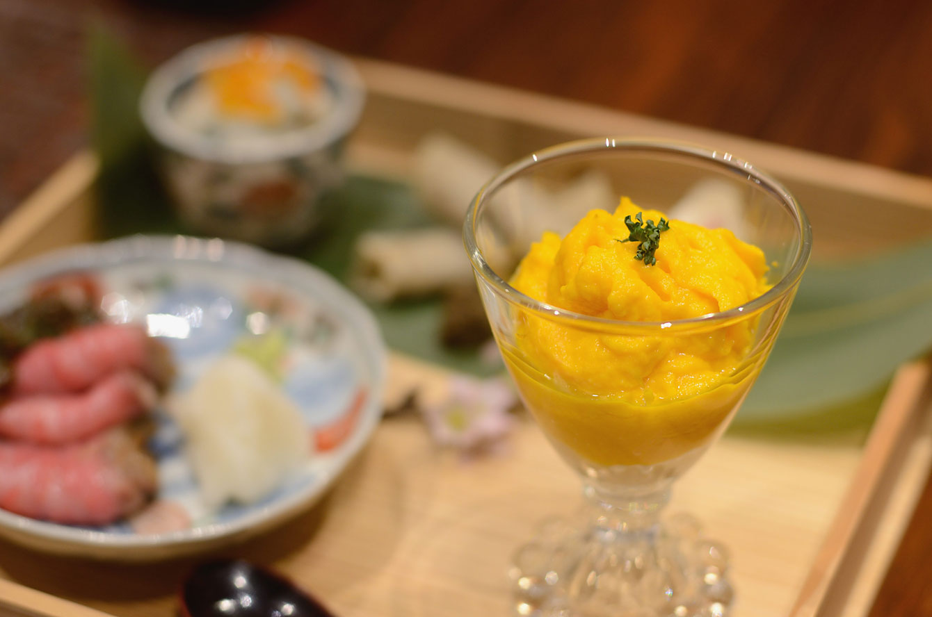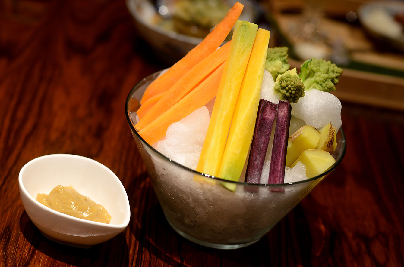 特に印象深かったのが黒にんじん、黄色にんじん、オレンジにんじんのバーニャカウダ。とにかく素材命の食べ方。にんじんたちは雪室にて保存することで糖度がアップするといっていただろうか。野菜くさくなくて、自然な甘さでフルーツみたいだ。あと、「ジャガイモって言ってた?サツマイモ?」そう何度も連れに聞き返したほど甘みの豊かなのはジャガイモであったようだ。