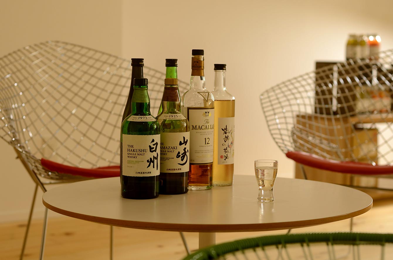 ありがたいことに日本酒、焼酎、シングルモルトウイスキー、ハーブティーなどがフリードリンクで用意されている