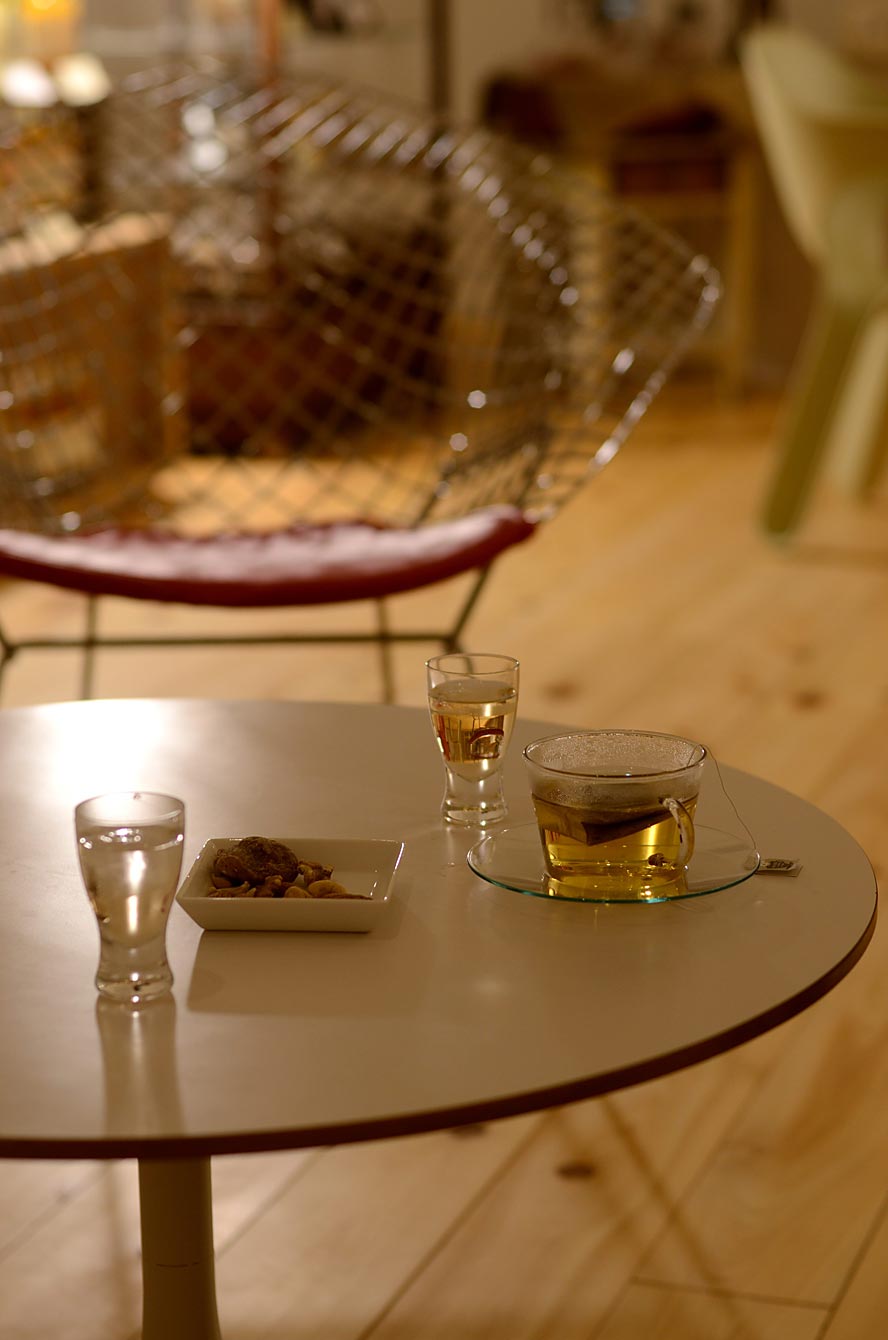カシューナッツ、アーモンド、イチジクのドライフルーツも。部屋へ戻るまでのひととき、夜更かし気分がなんだか楽しい。