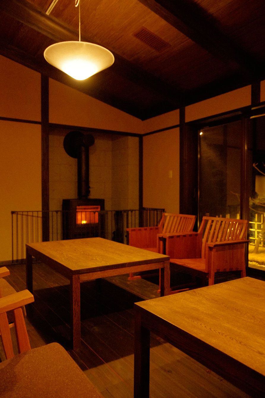 ノスタルジックな灯りに照らされた夜のラウンジは、夕食後のデザートとお茶をいただいたり、書棚の本を手にとったりして、セピア色の時の流れをゆるりと感じながら過ごせる場所です。
