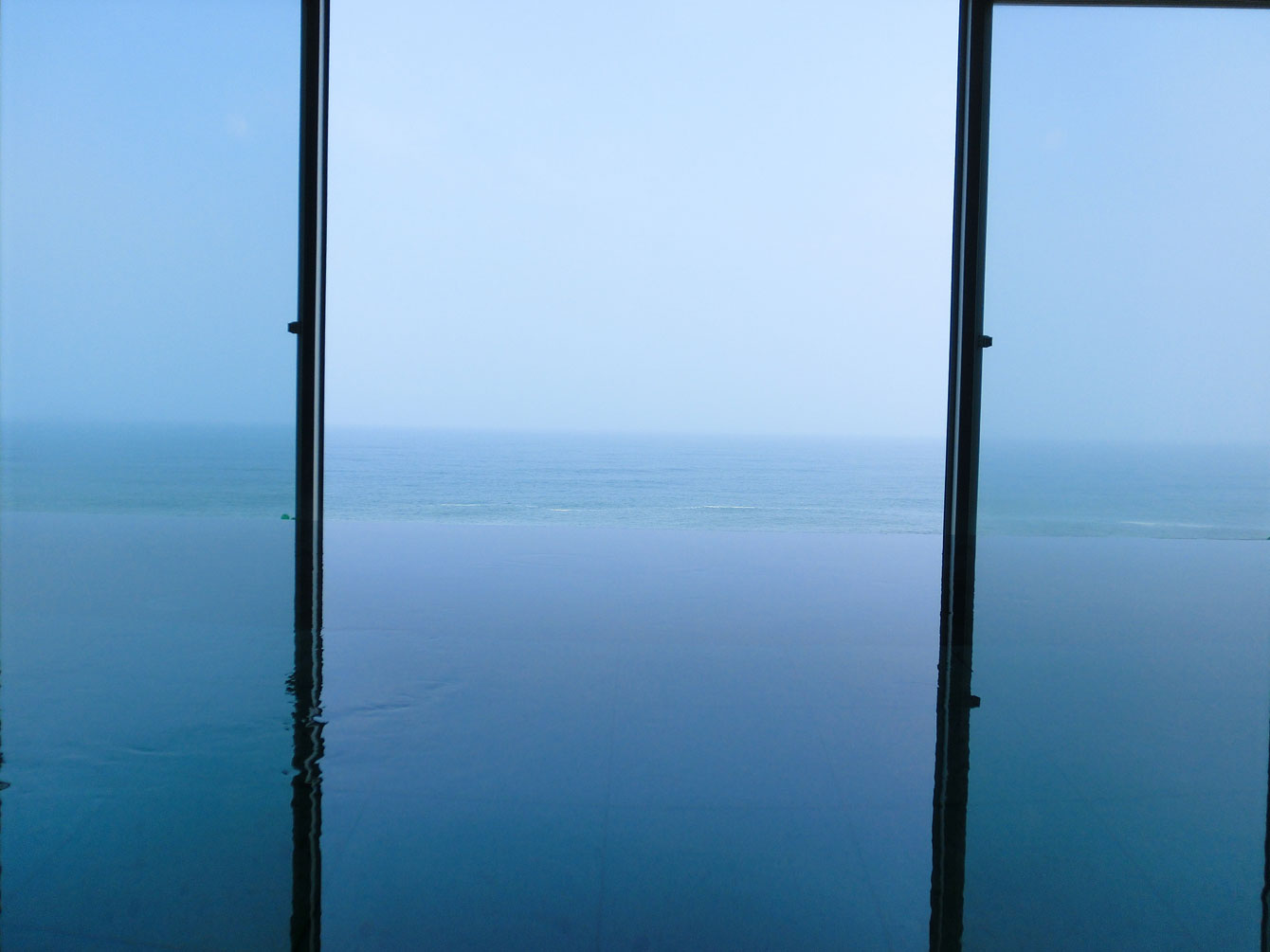 晴れたら、お風呂の水面が海の青と空の青につながって行きます。