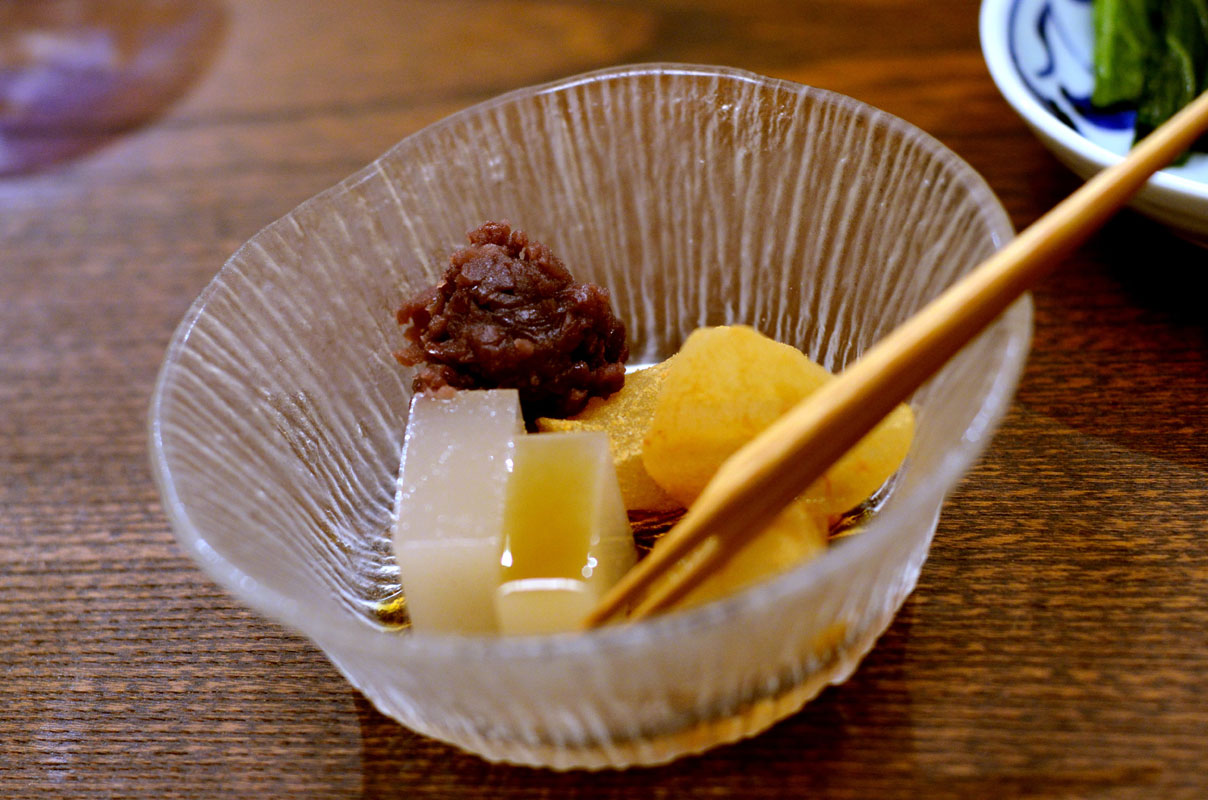 寒天、葛餅、餡子のあんみつ。この餡子がとても美味しかった。