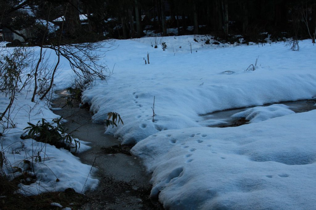 雪が降った時は、動物の足跡を追跡する遊びも出来ます! もちろん、「田んぼ」エリアには足を踏み入れません。 危ないですし。