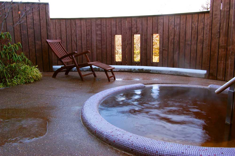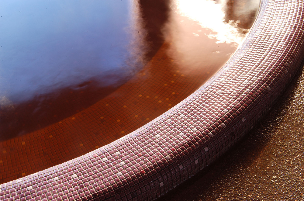 こちらは露天風呂。イタリアから輸入したガラスタイルはどことなくレトロモダンな雰囲気でいいですね。