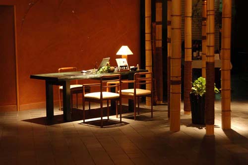 日中のヒーリング音楽にかわり夜のバータイムには静かなジャズが奏でられるが、夜が更にふけてくるとここも無音になる。不思議な静寂が支配する夜のロビーがとても気に入りました。