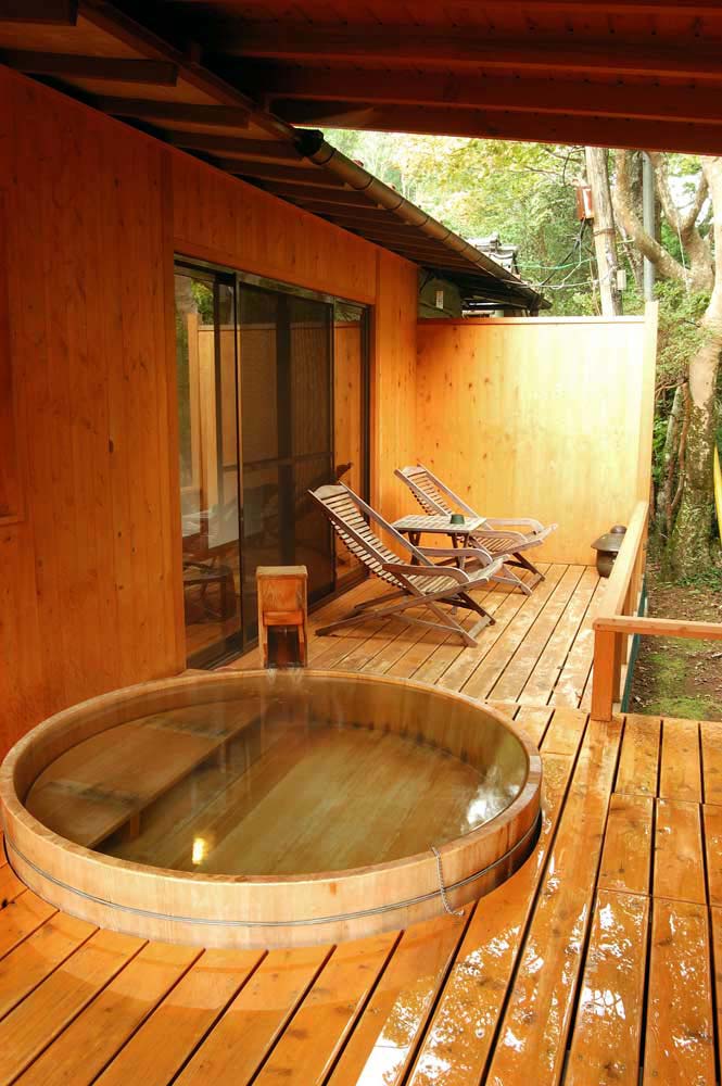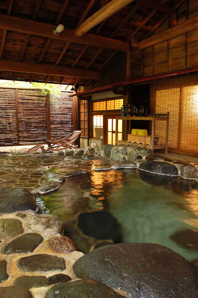 母屋には内湯と露天風呂があり、特に予約も必要なく内鍵をかけていっぺんに両方を貸切利用できるのだ。貸切とは思えないほど贅沢なお風呂を、裸のまま行ったり来たり。露天(貸切)では寝湯になれるスポットを見つけて吉奈川のせせらぎを聞きながらのんびり至福の時