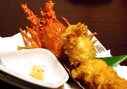 ごま油で揚げた伊勢海老の天ぷら
