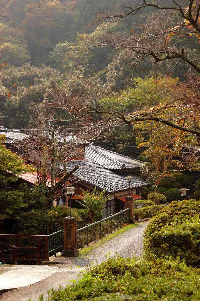 山へ向かう一本道の途中にひっそりと温泉宿が3軒。一番奥にあるのがここ「離れ家 芳泉荘」。狩野川の支流、吉奈川が流れるこの橋を渡るとそこは昭和初期にタイムスリップしたかのようなレトロな世界。ノスタルジックな雰囲気に心ときめき頬が緩む。