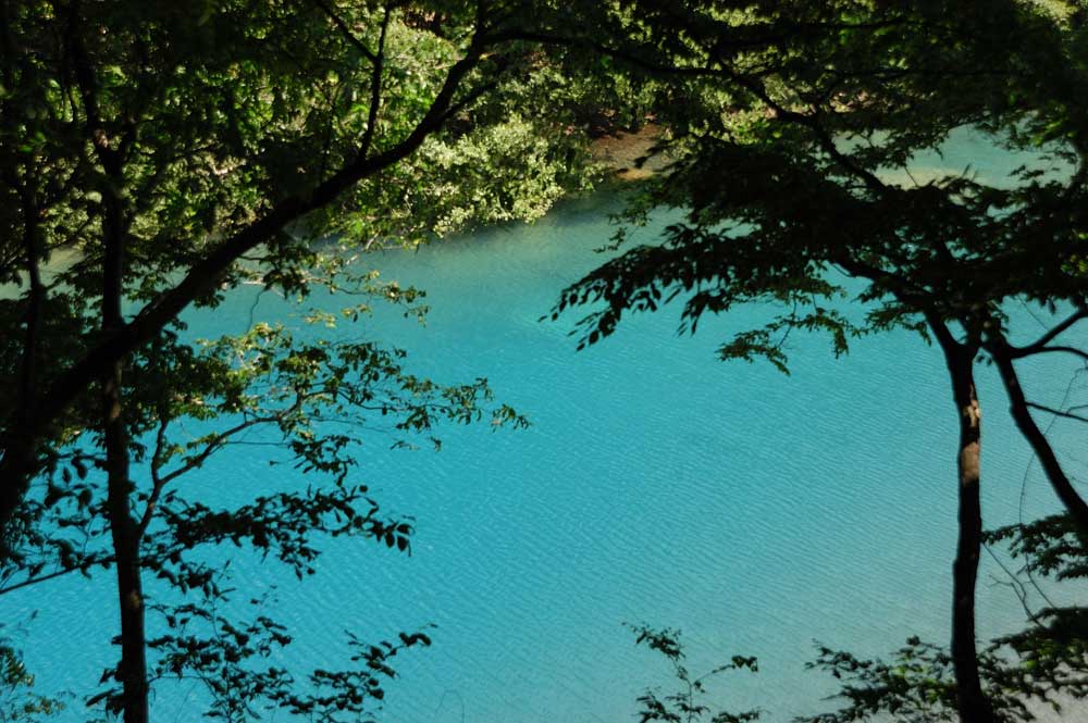 あまりに道がスゴイ道(未舗装)が続くので、「きっと道を間違えたのだろう、引き返そう。」しばらく砂利道に苦しめられていると突然、エメラルドブルーの美しい川が目に飛び込んできた。(この写真は6月に撮影)