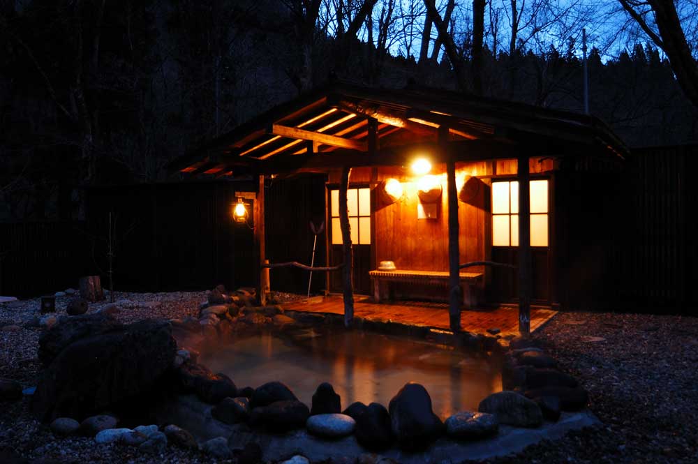 漆黒の闇につつまれて入る露天風呂は格別。まさしく秘湯です。露天風呂は男女時間交代制。