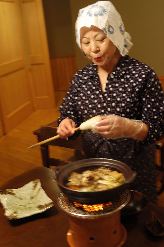 途中「おばんです?!」とバリバリの秋田弁のおばちゃんが頬かむり姿で登場!きりたんぽの説明をしながら、きりたんぽなべをセッティングしてくれる。 楽しいです。米はあきたこまちで、出汁は比内地鶏からとったという本格派。旨かったよ?