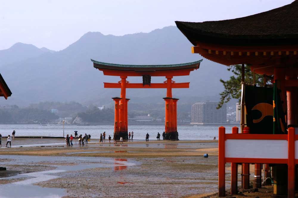 宮島口から船に乗って約10分、日本三景の一つに数えられる安芸の宮島に着く。ご存知、海に浮かぶ大鳥居は世界遺産にも登録された厳島神社のシンボル。な んと海底に固定されているのではなく鳥居自体の重みで立っているそうだ。
