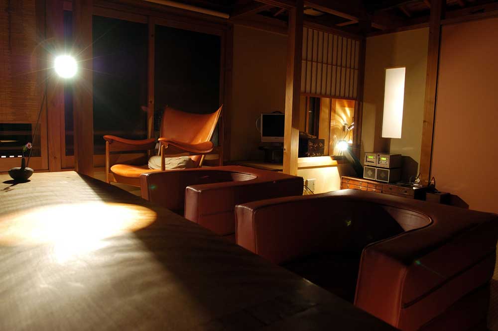 ぽかんとした時間を2階で過ごす。渋いジャズの音色を響かせながら、本をぺらぺらめくってみたり、椅子に腰掛けて静寂の夜景を眺めたり。そして“気が 向いたら”くらいの気持ちで湯舟につかる。主人のプライベートルームだからといって主人が入ってくるわけではありませんのでご安心を。