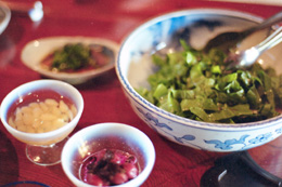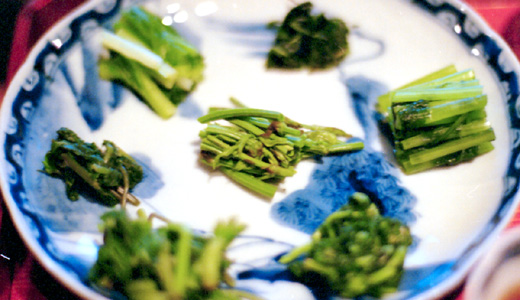 自家製の漬物だけでも10種類。黒豆の納豆はサラリとしていて、納豆嫌いの人も病みつきになりそうですし、栽培しているというアクのないワラビとウゴッケイとの卵とじは、ほんとにやわらかくて美味しいんです。