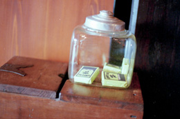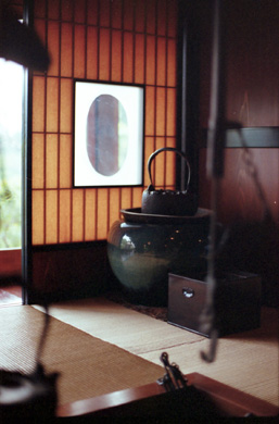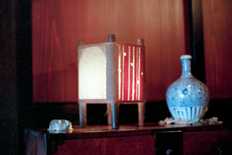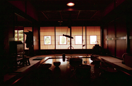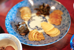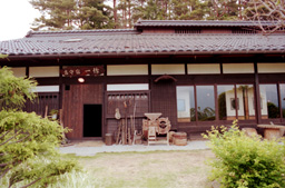 この旅行のこの旅行の一番の目的は「古守宿一作に泊まりたい!」でした。廃刊になった『SINRA』や旅行誌、つい最近では『自遊人』にも紹介されている人気の宿なので、ちょっと早めの昨秋に予約を入れておいたのです。日本料理の料理長をしていたという新海さんの料理は、地場の素材にこだわり、見えないところの手間隙をかけて素材の持ち味を生かし、そして古伊万里などの骨董の器に盛り付けられた美しさと美味しさが、一層心に残る夕餉となりました。また宿での朝食に一時間半たっぷりかけるなんて、今までにないことでした。それくらい食材が豊富なのです。自家製の漬物だけでも10種類。黒豆の納豆はサラリとしていて、納豆嫌いの人も病みつきになりそうですし、栽培しているというアクのないワラビとウゴッケイとの卵とじは、ほんとにやわらかくて美味しいんです。客室は柿渋染の障子紙が陽光を和らげ、行灯にも柿渋和紙が貼られて、癒しの光に満たされています。テレビは古い棚に収められていて、普段は存在を消し、見るときに戸を外すのです。糸巻にも着物を染めるたのめ型紙をスタンドのセードにしたり、柿渋染めの和紙貼りの灯りなど、古い時代の物を今の暮らしに合わせてのひと工夫がすてきでした。囲炉裏の炭の温もりと香りに包まれ、心地良い時間が流れていきます。 小屋裏は、趣味で集めたという骨董ギャラリー。ご主人の新海さんは骨董に造詣が深く、目利きでもあります。また、解体現場があれば出かけていって建具等を譲り受け、柿渋の和紙を貼ったり蝶番をつけたりして、アレンジされています。『古守宿一作(こもりやいっさく)』は“古いものを守り、作物は一から作ってもてなす” というところからの命名だそうで、一日ひと組の宿。わたしたちは、温かいもてなしに至福のときを過ごしました。