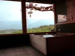 離れのお風呂は、大工のお父さんが建てたとのこと。お湯は薪で沸かしているのだそうです。薄っすらと雪を頂いた甲斐駒ケ岳の眺めはすばらしく、桧の湯船に浸かりながら極上のひととき!庭先の展望デッキから見える風景は田んぼと新海さんちの畑、それに甲斐駒ケ岳と連なる南アルプスだけ。