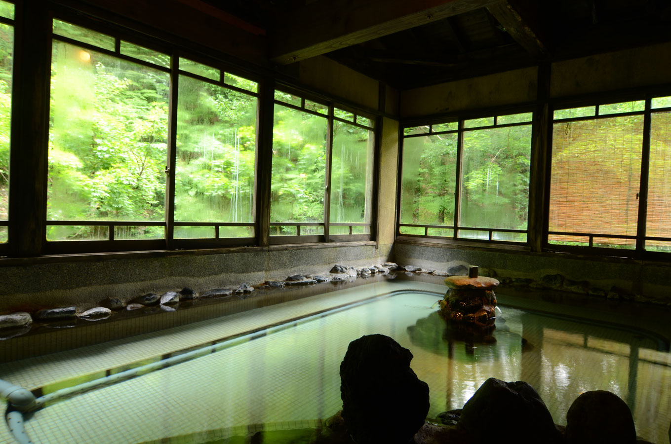 窓の外では、もうもうと力強い緑が燃え、透明な湯面は木漏れ日を反射させて壁にその姿を揺らしている。