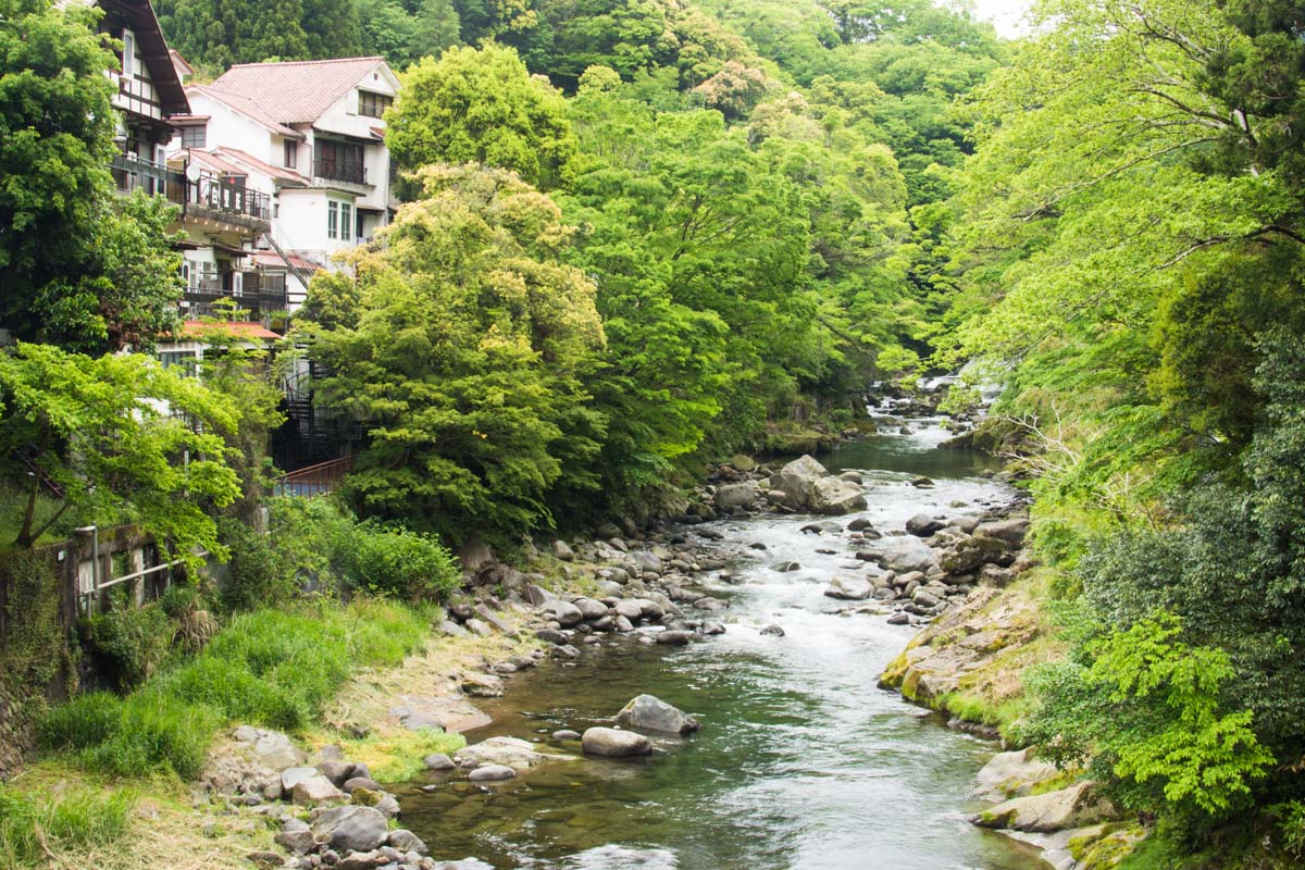 以前この辺りを通った時、橋の上から「あのあたりに宿らしき建物が見えるなぁ」