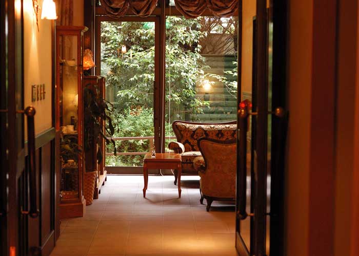 約3000坪もの敷地に生い茂った竹林や木々に覆われていて、御宿かわせみはの正体は、敷地の外からはほとんどうかがい知れません。覚悟を決めて、 青々と茂った木々のトンネルをくぐるように車寄せに車をつける。茶室を思わせるしっとりとした和の空気の入り口が現れた。