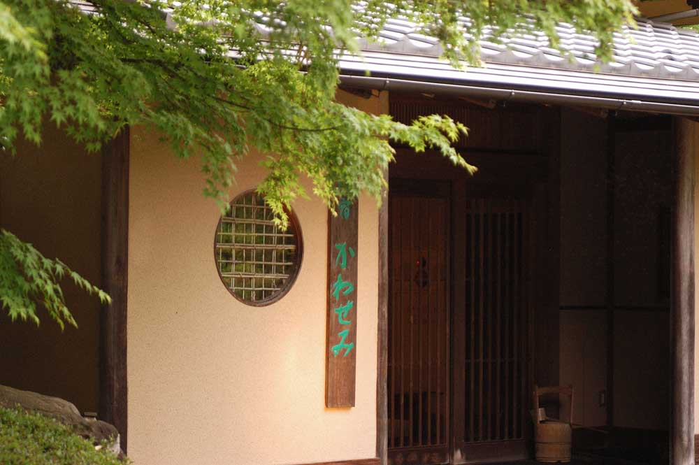 かわせみの声が聞こえるかのような静かな摺上川のほとり、3,000坪の自然林庭園に佇む上質な数奇屋は竹林と楓に覆われて中の様子は掴めない。覚悟を決めて車寄せにまで車を進めると、番頭さんが車まで出迎えてくれ、打ち水された玄関を入ると畳敷きのところに接客係が正座をして私たちの到着を待っていた。さすが高級旅館。雰囲気に飲まれてはいけない、正気を保たねばと思いつつ、沓脱石(くつぬぎいし)で履物を脱ぐその姿は相当にぎこちなかったに違いない。こんな思いするなら止せばよかった、そう思ってもおかしくないはず。しかしそうならなかった。それどころか、もう引き返せないくらいこの宿に惚れ込む事になる。