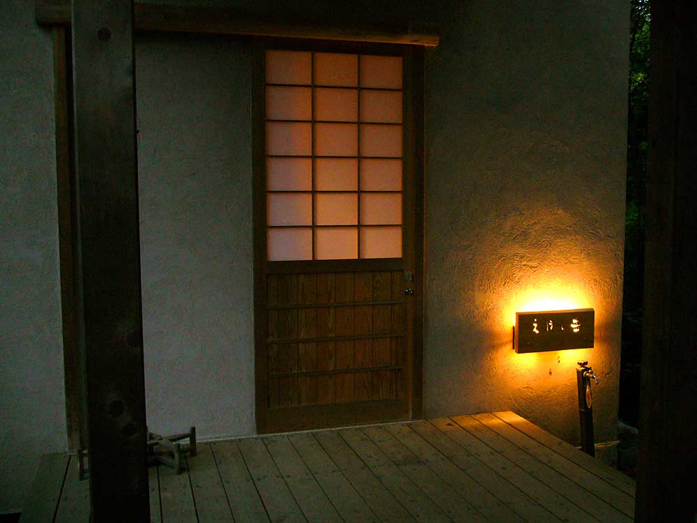 同じく貸切露天“雪待ち”は“通り雨”への通路沿いにある。“通り雨”より小ぶりな湯船に、同じ泉質の湯が灯篭風の湯口を錆色に変色させながらトロトロと流れ落ち、名前通りな雰囲気を壊さぬ様薪で上手に目隠ししている。