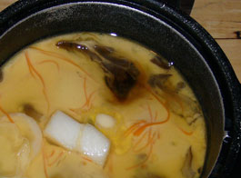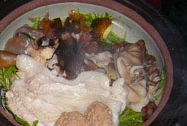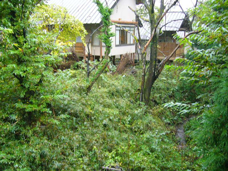 母屋から一番奥まった所にある貸切露天“通り雨”はしっとり濡れた木々に隠され、三人入れば一杯な湯船に“蔵王濁川の湯”が滾々と掛け流されている。泉質自体は無色透明な仄かに川の匂いがするさらっとしたもので、杉の香りと渓流のせせらぎが実に心地よい。