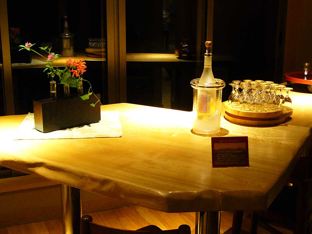 ライトダウンされた館内は大人の雰囲気が漂い、母屋の一角ではデザートワインが用意されていた。また、小とりサロンではコーヒー等のドリンクが味わえるなど、それぞれ充足の時を過せる配慮がうれしい。