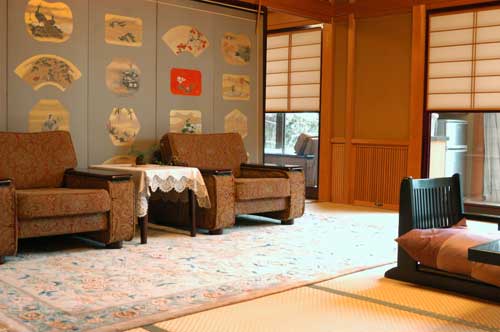 露天風呂付の特別室「聚楽の間」をウキウキしながら見回り開始。127?の超余裕のラグジュアリースペースはやはり広い。興奮がひとしきり落ち着き、ソファーに腰を下ろすとどこか、旧家の別荘に泊まっている気分になった。