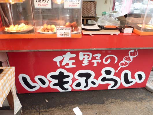 OnsenRyokan山喜へ行く途中佐野サービスエリアで休憩。 ここで先月テレビの旅番組でやっていた、佐野名物「いもフライ」が気になったので購入してみました。 蒸したいもを衣でカラっと揚げてあり、ホクホクカリカリでとてもおいしかったです。