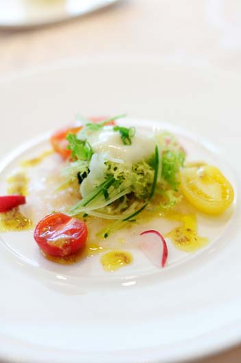 前菜は鯛か何か?のカルパッチョ。スイマセン、久しぶりにA&Pさんとの再会で話しに夢中でメモをまったく取ってなかったのでソースもどんなものだったか・・・。