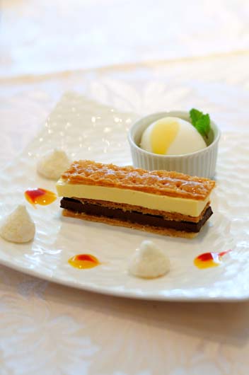 Bコース¥7250 アミューズ、前菜、魚料理、鴨料理、デザート、カフェ