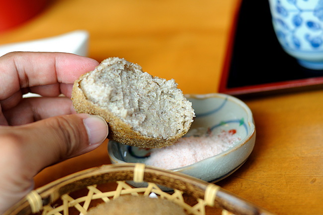 これは蕎麦がきを揚げたもの。前回は味噌味を食べてるので今回は塩。